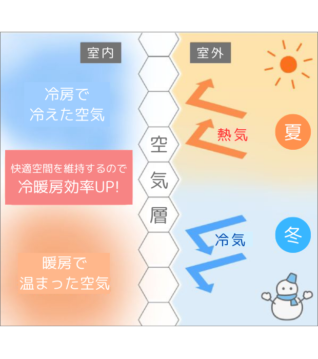 部屋と窓の間に空気の層を作り