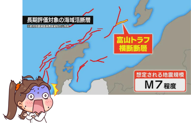 「富山トラフ横断断層」_30年以内にM7以上の地震の確率12%越え!