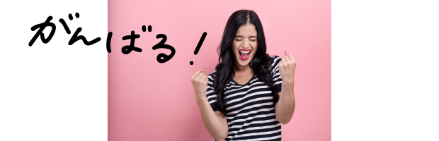 女性が「がんばる!」と書かれた背景でガッツポーズ