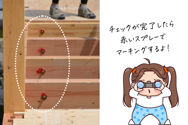 > 上棟日の「ボルトチェック」