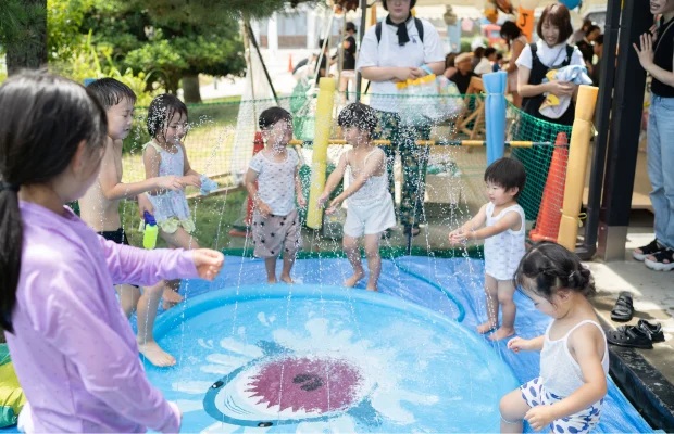 水で遊ぶ子どもたちは暑いのもなんのその、